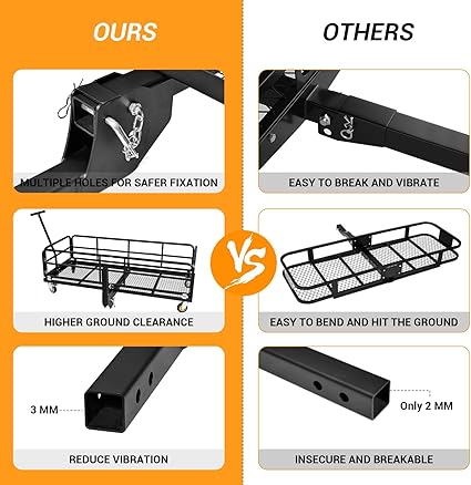 • 【Heavy-Duty Steel Frame】Constructed from high-quality materials, this cargo carrier is built to withstand harsh conditions and deliver long-lasting performance.
