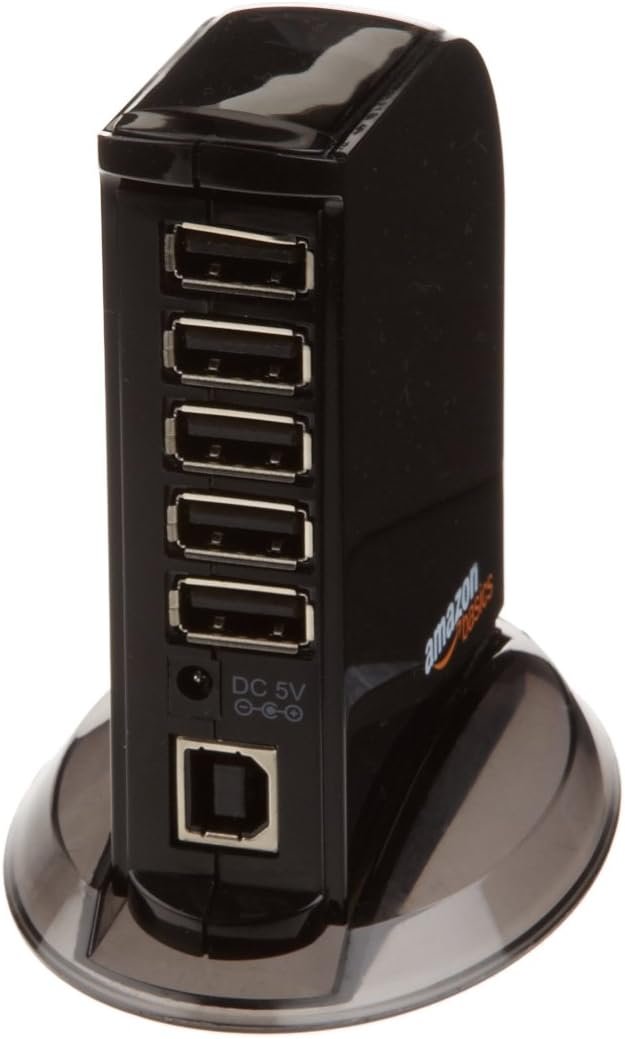 Amazon Basics 7 Port USB 2.0 Hub Tower with 5V/4A Power Adapter, Black