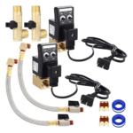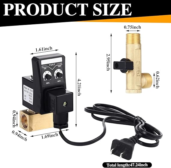 - Package includes: 2 sets of extended water tank drainage component kits, each equipped with braided steel pipes, 1/4 inch NPT, 1/4 inch -3/8 inch brass adapters, and threaded sealing tape; The 110V electronic drain valve is a split type; The main material is brass, which is sturdy and reliable, and can meet your needs