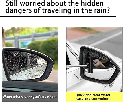 - 【Safety Driving】: The car rear-view mirror wiper could wipe the water quickly and is convenient to operate. It’s dangerous for a driver to get off the car to clean them in dark rainy days while our wiper enables you to finish cleaning without getting off, maintaining clearness in rainy or foggy weather as well.
