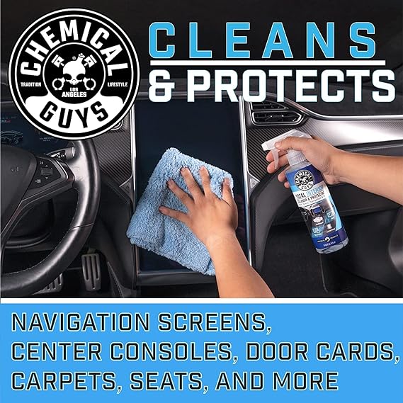 - ONE CLEANER TO RULE THEM ALL – Rather than use separate cleaners for leather, vinyl, plastic, carpet, cloth, glass, and wood, Chemical Guys developed Total Interior Cleaner & Protectant; with just one product, you can now clean and protect virtually all interior surfaces!