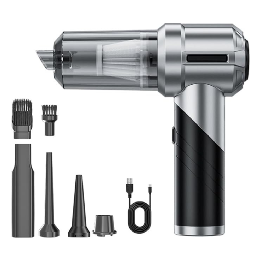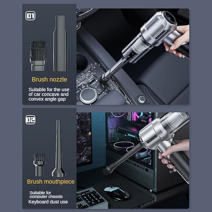 - 【3-in-1 Multifunctional Mini Vacuum Cleaner】Mini vacuum cleaner is equipped with a variety of accessories to meet various usage scenarios such as blowing, sucking and pumping. It can not only clean computer keyboards, host computers, windows and other difficult-to-clean gaps, but also sofas, seats, cars, woodworking workshops, offices, etc, to meet your various cleaning needs.