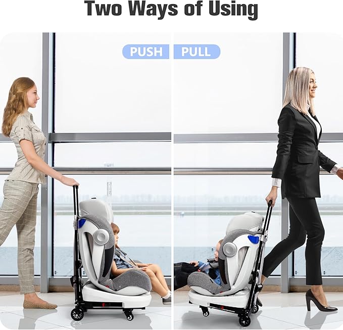 • Durable and Sturdy: The car seat dolly is made of 85% thickened steel material, which makes the airport roller stronger and more durable than other plastic car seat rollers, and has a longer service life. The pull is stable, and not easy to shake. (To ensure stability, please set it up before your trip, make sure it fits and you do it correctly.)