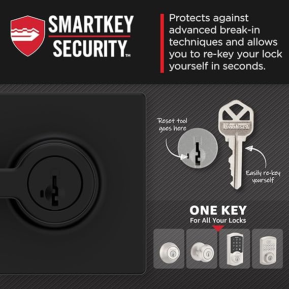 - SMARTKEY SECURITY: Kwikset’s SmartKey Security technology protects against advanced break-in techniques and allows you to re-key your lock yourself in seconds