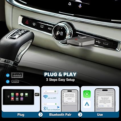 - 🆕【Easy to Use & Fast Auto-Reconnect】The CarPlay Android Auto wireless adapter is plug-and-play, requiring no additional drivers. Setting it up is simple and only takes three steps. Once the initial connection is made, the adapter will automatically reconnect and activate the wireless CarPlay connection every time you start your car.