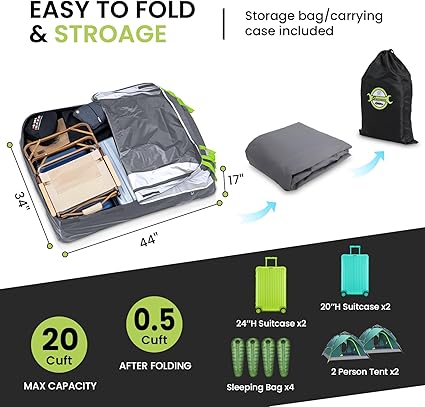 - 【Large carrying capacity】This premium roof top cargo carriers 51″ (L) X 39″ (W) X 17″ (H) with 20 cubic feet of storage capacity can hold 5-7 suitcases, travel luggage cases, camping tents, sleeping bags, and more. Made of soft shell material, it can be folded into a storage bag to save space when not in use!
