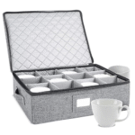 - RELIABLE PROTECTION. STORAGELAB’s china storage containers are made to protect your coffee cups and mugs. Keep them away from the elements with a hard shell case and quilted soft padding.